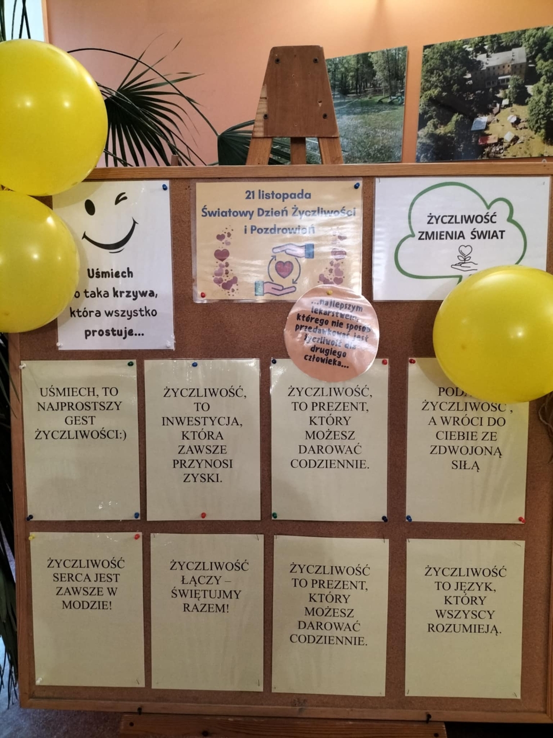 Dzień Życzliwości utwierdził nas w przekonaniu, że warto być życzliwym na co dzień. Pamiętajmy, że bycie życzliwym i uprzejmym nic nie kosztuje, a sprawia wiele radości i uśmiechu nie tylko nam, ale i osobom przebywającym w naszym towarzystwie. Okazana serdeczność i wzajemne ciepło są dobre na wszystko, a pozytywna energia, którą przekazujemy w świat do ludzi, wraca do nas z nawiązką! Dzięki zaangażowaniu uczniów i nauczycieli "Dzień Życzliwości" upłynął w atmosferze uśmiechu i dobrej zabawy. Pamiętajmy, aby życzliwość w naszym życiu była obecna codziennie, a nie tylko od święta.