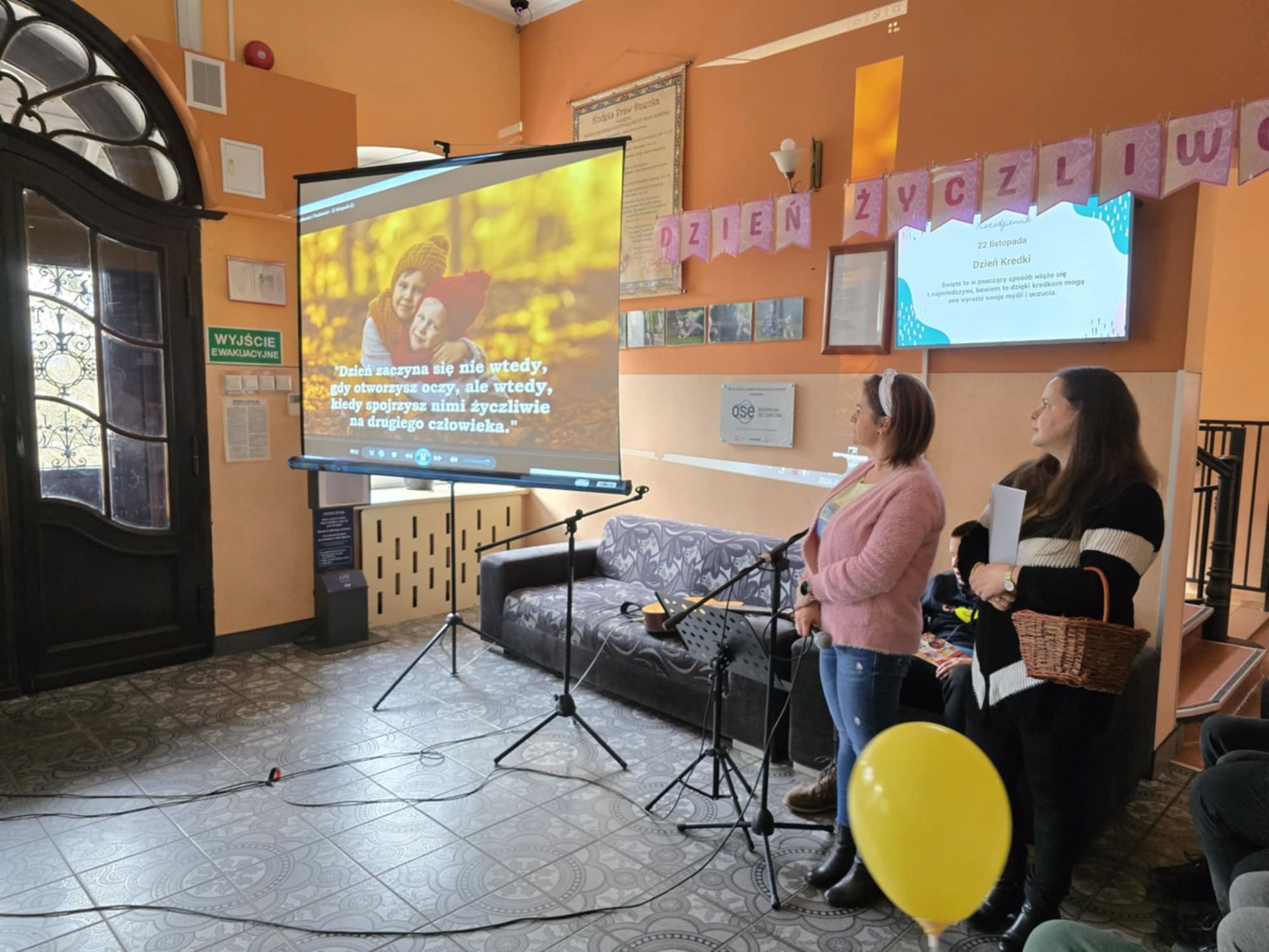 Na korytarzu pojawiła się „Skrzynka Życzliwości i Pozdrowień”, na której widniało hasło: „Zrób kartke i napisz kilka miłych słów koleżance i koledze”. Uczniowie mogli do niej wrzucać życzliwe liściki, pozdrowienia, laurki, które później zostały przekazane odpowiednim osobom. Wspólnie śpiewaliśmy piosenki, obejrzeliśmy prezentację multimedialną i występ młodych aktorów z naszej szkoły a na koniec uroczystości mogliśmy zrobić sobie pamiątkowe zdjęcie.